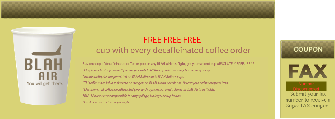 spending will earn BLAH Airlines miles, which can be redeemed for valuable in-flight items like extra peanuts and earphones